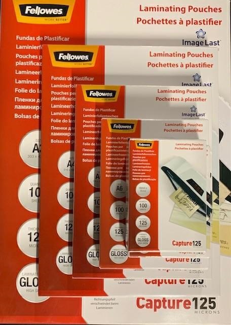 Pouches Fellowes per documenti formato 54x86. Formato da 125 micron con confezione da 100 pz. Le pouches Fellowes offrono un livello ottimo di protezione del documento.